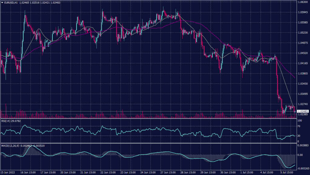 The Euro pair drops to a new 20 years low and hinders any sign of recovery. The overall direction remains strong selling trend reaching below 1.0240