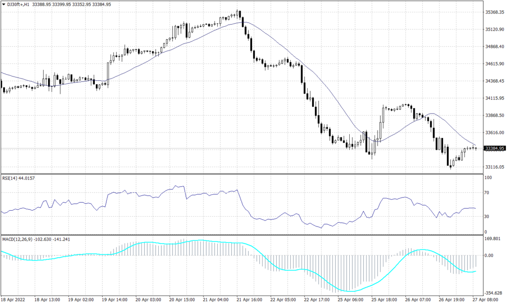 The long-term view of the Dow Jones shows a further decline after breaking below the support at 34,300. Furthermore, the U.S. blue-chip is expected to decline to 32,700. Meanwhile, the short-term chart shows support above 33,400. Technically, the Dow Jones is expected to fluctuate around 33,400 with a tendency to fall towards 33,230.