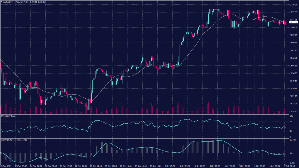 Bullion prices benefited as the dollar retreated further from a 20-year high this week, while U.S. Treasury yields also fell as markets bet that weakening economic growth will push the Fed into eventually softening its hawkish stance. Spot gold was largely unchanged at $1,712.03 an ounce, while gold futures were also steady at around $1,720.25 an ounce.