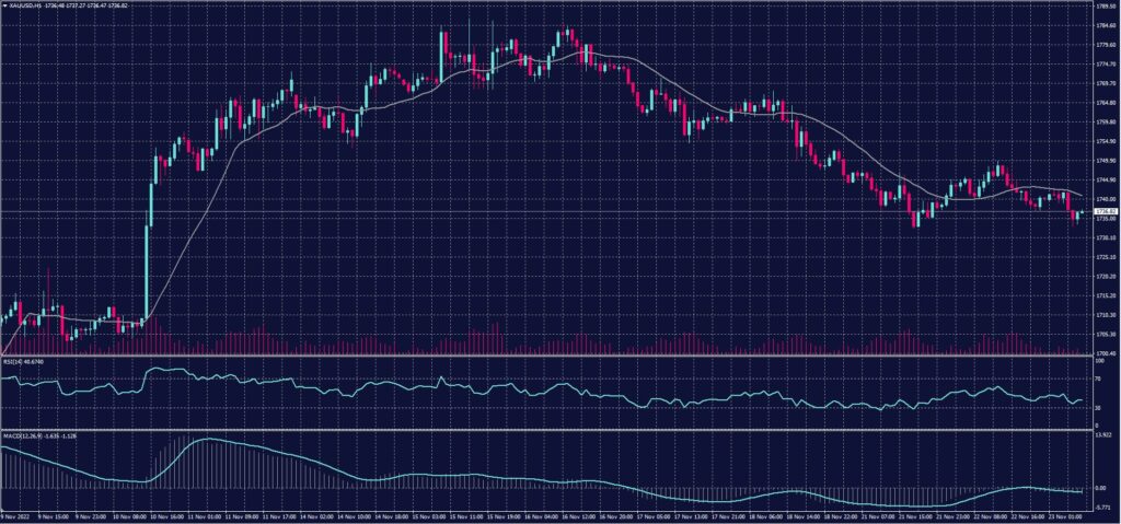 Gold futures closed almost unchanged on Tuesday, November 22, ending a 4-session losing streak due to the strength of the US dollar. At the close of trading, gold futures (December contract) settled at $1,739.9.