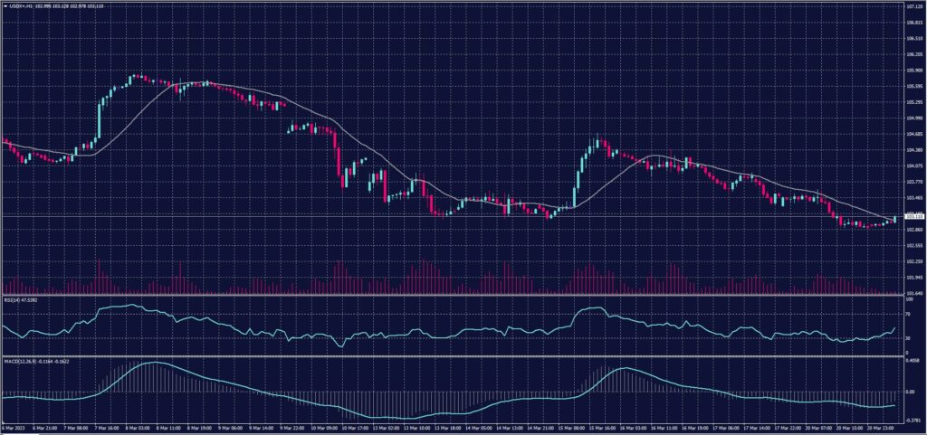 Within its downward horizontal trend, the US dollar settles near its pivot point at 103.15, and investors await many important economic data, on top of which are the Federal Reserve interest rates and the economic expectations of the Federal Open Market Committee, tomorrow, Wednesday, March 22nd.