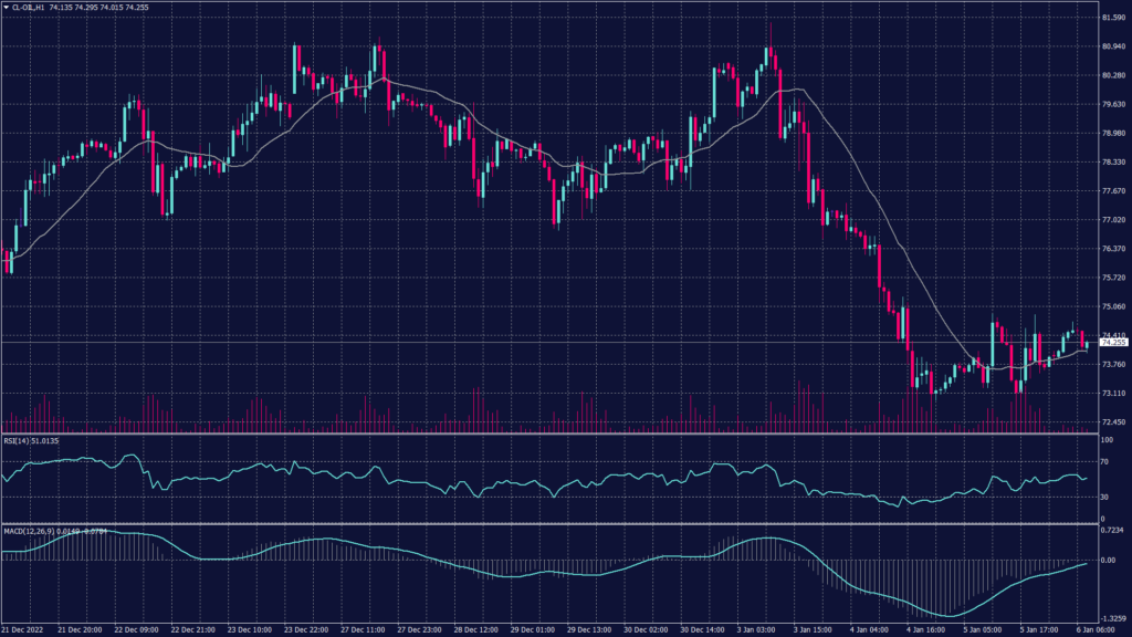 WTI future hourly chart shows high possibility of dropping towards $73.00 per barrel. However, technical indicators remain on the neutral side.