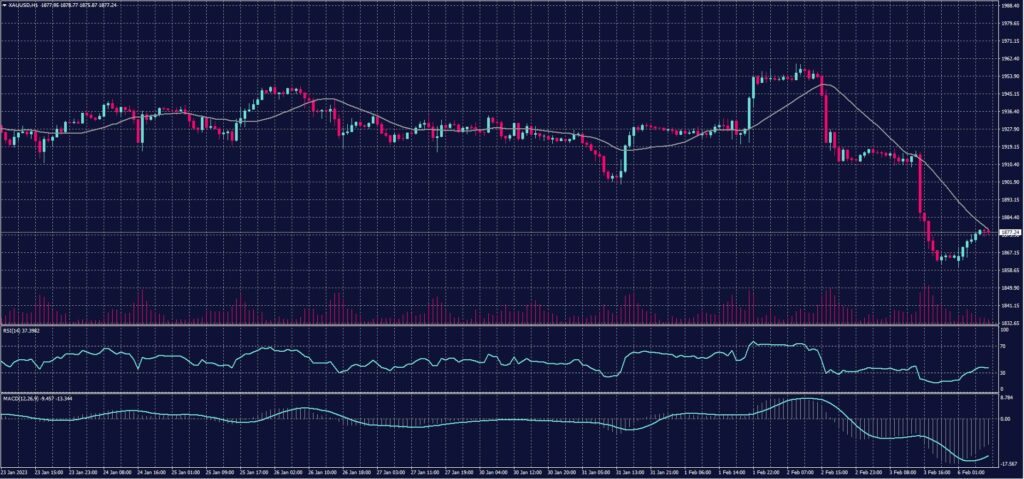 Upon settlement, futures contracts for the yellow metal fell by $54.2, or 2.8%, recording $1876.60 an ounce, which is the lowest settlement price for the most active contract since January 10. Moreover, it also recorded the largest weekly loss since June 2021, by about 2.7%.