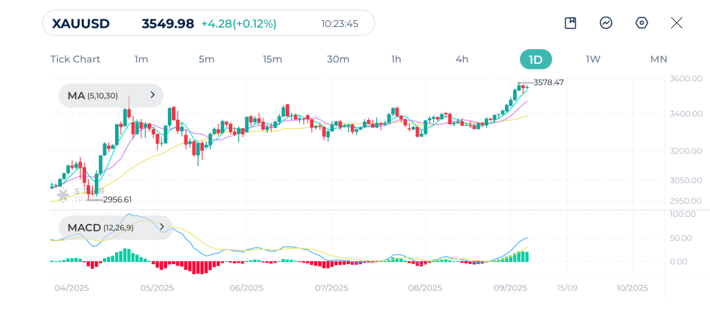 - Gold breaks a new record high at $3,580 on higher expectations of Fed rate cut