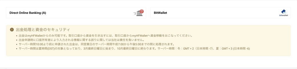 HFMでは、出金先に優先順位があり、入金に使用した方法と逆順で出金しなければなりません