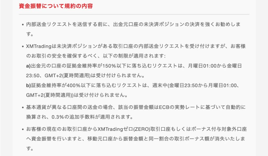 - 資金移動先の追加口座がゼロ口座だったりボーナスの受け取りを許可していなかったりすると、ボーナスがリセットされてしまう。