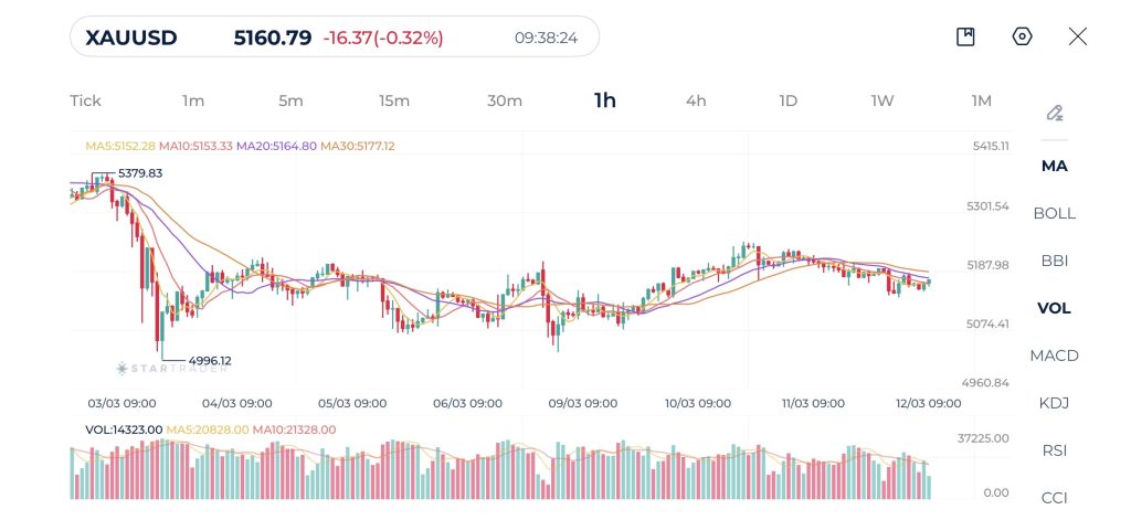 金は現在 5,160〜5,200ドル付近で推移しています。今月初めには 5,335ドル付近から急落し、一時 5,000ドルを下回る重要サポートゾーンまで下落しました。