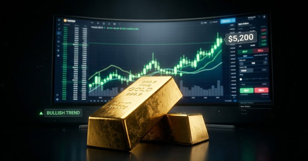 金は現在 5,200ドル台で推移しており、5,000ドルの心理的節目を下抜けた後の急落から 緩やかな回復基調を示しています。