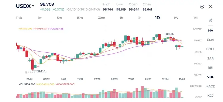 米ドル指数(USDX) 日足チャート