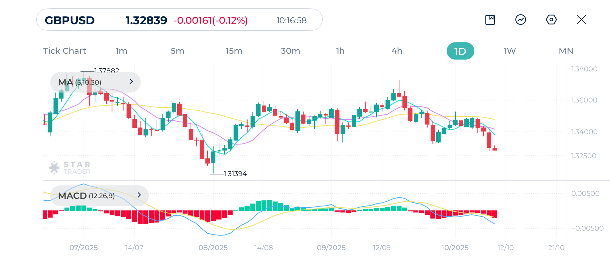 GBP/USDは7月以降、概ねレンジ内での推移を続けているが、直近で1.3323のサポートラインを下抜け、さらなる下落リスクを示唆している。